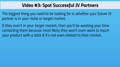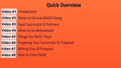 In this video course, you will learn what you need to get started, how to find joint venture partners, approach them, and become a JV magnet. Remember, while everyone is too busy spamming them, you’re doing it professionally. You’re doing it smart.