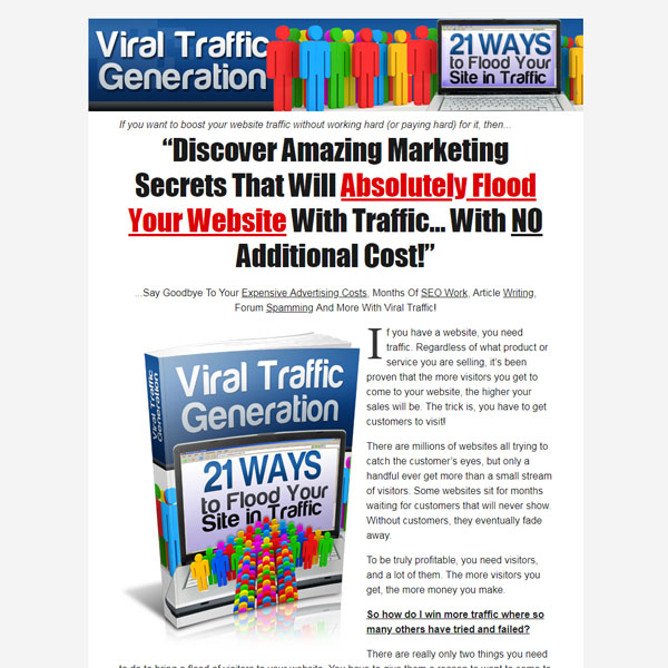 You can learn how to put together a strategy that works best for you in our powerful guide, “Viral Traffic Generation: 21 Ways to Flood Your Site in Traffic”