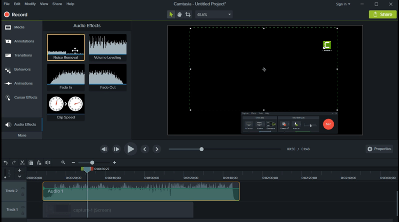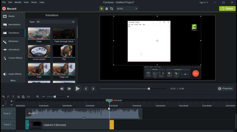 Ideally, you’d like the final product to turn out just the way you mentioned. It’s important to have a total control over the content. With Camtasia studio, you can easily edit, remove noises, create transitions and add effects without wasting any time. Remember that you can put all these edits without affecting the original recording at any stage.