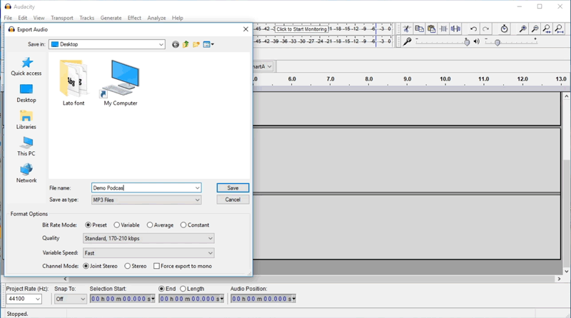 - Once you're done with the recording, don't forget to save the file in MP3 format (also, it's a good habit to cross-check whether the file is working or not!)