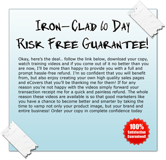 Download the videos. Watch them. Then apply the techniques found. Create your own professional eCover in one hour. If, for any reason, you are not satisfied, or you still fail to create your own first professional eCover, delete the videos from your computer and send me an E-mail for a refund.