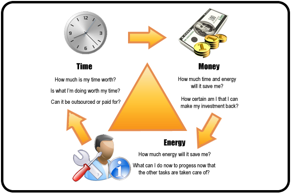 The more you attempt to save and do things yourself, the more of your own energy and time your using. Likewise, the more you invest or outsource, the less time and energy of your own you need.
