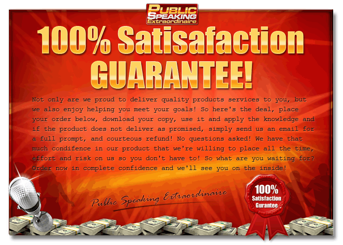 Introducing the final results of my trial and error, Public Speaking Extraordinaire is a digital audio course designed to take the shy, timid newbie to becoming the next public speaking superstar in 3 days... Guaranteed!