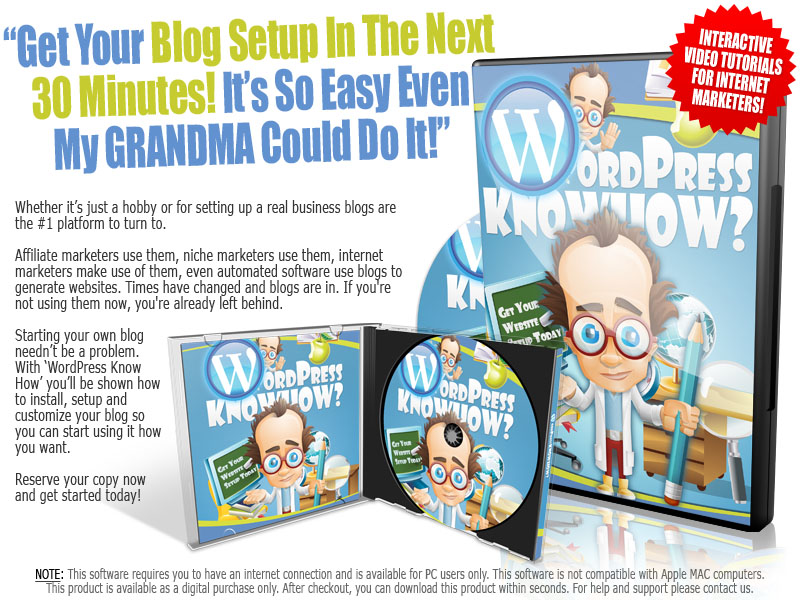 Take advantage of this wonderful opportunity to make money on the internet! If you're serious about setting up your own business and expect to sell frequently, then you simply CANNOT run a successful business without the knowledge found in WordPress Know How - just ask the pros (that's if they're not too busy to answer you because they're busy making money using the same system!)