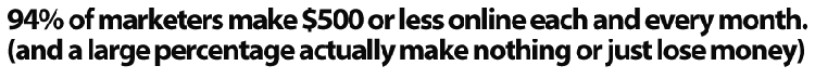Well here's the cold, hard truth:  Most online marketers simply end up experiencing confusion, they spend way too much on crap 'systems' that don't work, they make meagre or non existent profits and end up completely overwhelmed.