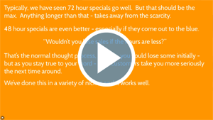 Just as the title states, you’re going to offer a time-limited offer at a discounted rate. There are a couple ways you could do this, and in this video, we will cover two different avenues that you can take to achieve this. You’ll be given two different scenarios that have worked well. Plus, we’ll show you the maximum time you should offer, so you don’t lose your momentum.